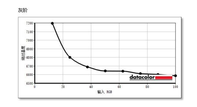继续看亮度、对比度以及不同亮度设置的白点,亮度设置100%时红蜘蛛校色仪测得亮度为433.3cd/㎡,白点色温范围为6600K到6800K之间,与标准6500K相差极小,控制得还是挺不错的。
